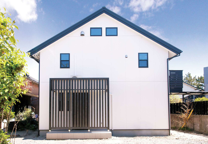 シンプルな切り妻屋根の外観デザイン 玄関回りの格子がアクセントに イエタテ